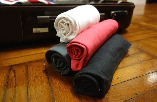 ม้วนเสื้อผ้าใส่ในกระเป๋า